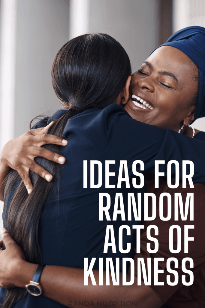 I’m sure you’re wondering what ideas for random acts of kindness have to do with nutrition. Random acts of kindness does some magical stuff to your mental health, which affects your mood, which affects your choices throughout the day.