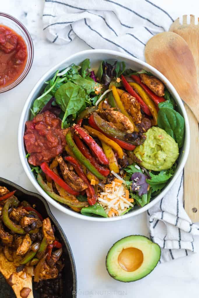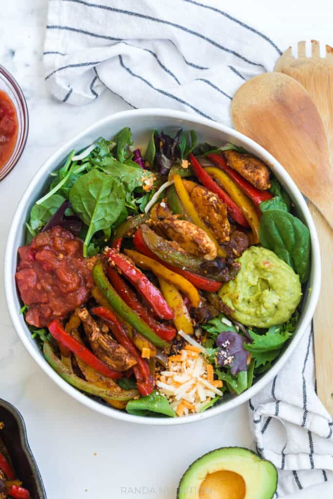 This chicken fajita salad is one of the easiest recipes to make. Great for a quick family dinner or a meal prepped lunch for the week. You can make it with pre-mix fajita seasoning or make your own. It’s so versatile!