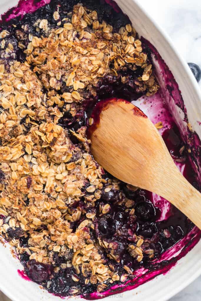 This gluten-free blueberry crisp is a great way to use up any extra juicy blueberries you have on hand. Serve it as a delicious dessert or a recipe for breakfast (serve with Greek yogurt for an extra boost of protein).